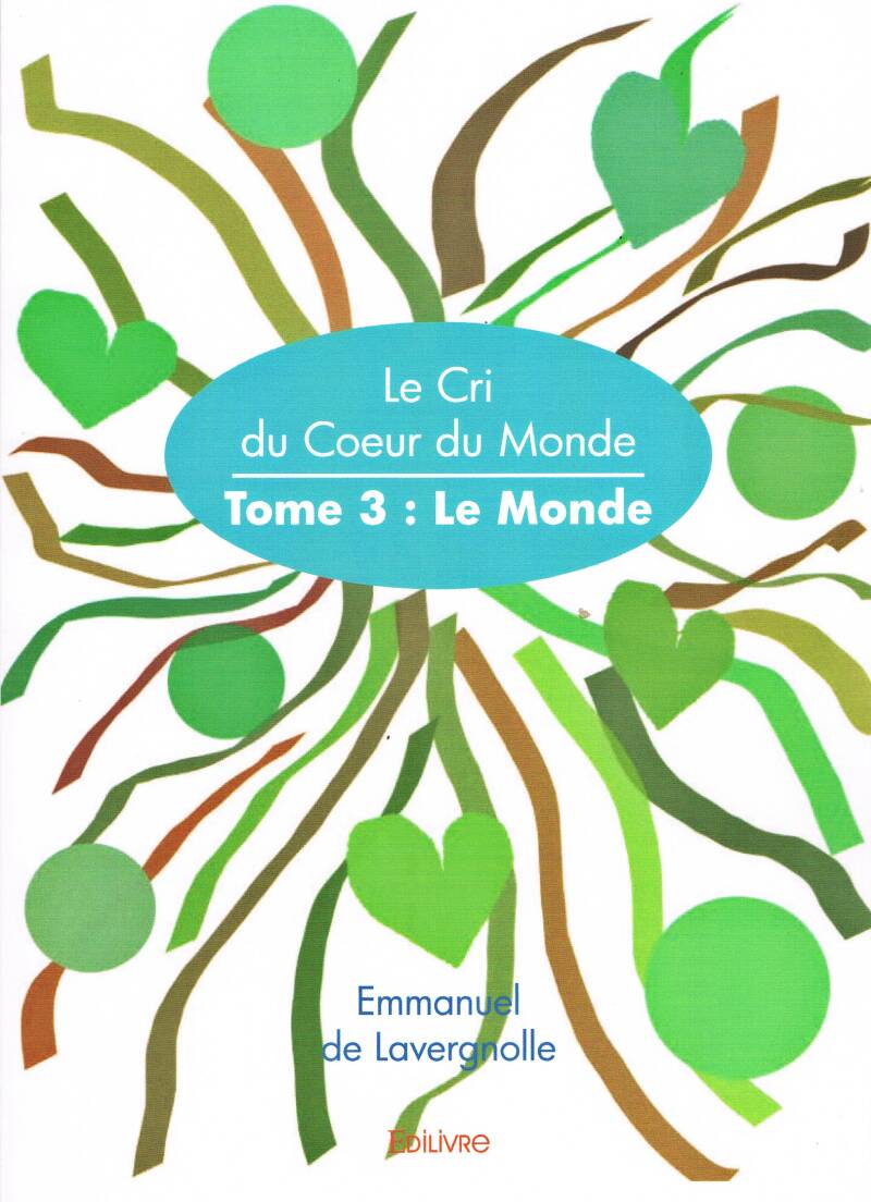 À la suite du 1er tome, intitulé Le Cri, et du 2ème tome, intitulé Le Cœur, Emmanuel de Lavergnolle nous propose ici le 3ème et dernier tome de l’œuvre globale Le Cri du Cœur du Monde, intitulé Le Monde. Ce tome s’attache, tout particulièrement, à décrire les interactions entre l’homme et le monde. On peut, par exemple, y lire que l’Art représente un cri et une interface énergétique entre le monde intérieur et l’Univers, le cri de l’Art étant sans doute le cri le plus abouti que l’homme puisse exprimer. Parallèlement, ce texte permet de parcourir des sujets très variés, comme le Big Bang, le rayonnement fossile, la théorie du Tout, les univers multiples, l’ailleurs, la vie extraterrestre, l’astrologie, le film du monde, la musique universelle ou encore la synchroncité.